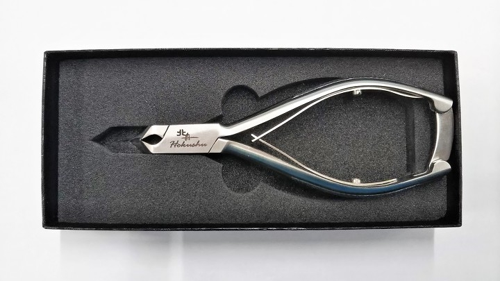 刃の幅を約20mmと長く設定してあり、刃の手前と先端の両方でカットできる為、指に食い込んでしまった巻き爪にも入りやすく非常に使い易く設定してあります。